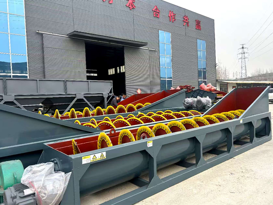 XL螺(luo)旋(xuan)洗(xi)(xi)砂(sha)(sha)機(ji)(ji)又稱砂(sha)(sha)石洗(xi)(xi)選機(ji)(ji),分(fen)為單螺(luo)旋(xuan)洗(xi)(xi)沙機(ji)(ji)和雙(shuang)螺(luo)旋(xuan)洗(xi)(xi)沙機(ji)(ji),是(shi)我公司采用優良技術和結(jie)(jie)合國內砂(sha)(sha)石行業實際情況研制的(de)(de)(de)洗(xi)(xi)砂(sha)(sha)設備。具(ju)有結(jie)(jie)構(gou)合理、洗(xi)(xi)凈度高(gao)、處理量大(da)、能耗低的(de)(de)(de)特點(dian)。它可以(yi)將制砂(sha)(sha)機(ji)(ji)制出的(de)(de)(de)混合砂(sha)(sha) 洗(xi)(xi)去微量的(de)(de)(de)石粉(fen)和雜(za)質,從而提高(gao)砂(sha)(sha)子的(de)(de)(de)品質,洗(xi)(xi)砂(sha)(sha)過(guo)程(cheng)中砂(sha)(sha)子的(de)(de)(de)流(liu)失少,尤(you)其是(shi)其傳動部(bu)分(fen)均與水(shui)和受水(shui)物料隔(ge)離,故障(zhang)率(lv)大(da)大(da)低于目前常(chang)用的(de)(de)(de)洗(xi)(xi)沙機(ji)(ji),深(shen)受廣大(da)用戶的(de)(de)(de)歡迎。